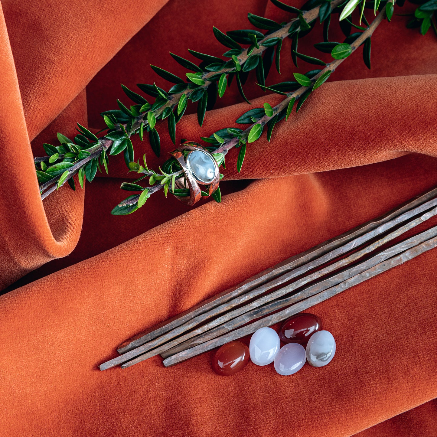 I create unique designs in gold, silver and bronze. I use natural stones for a pop of color. Here you will find proposals and available pieces, or contact me for a project just for you.